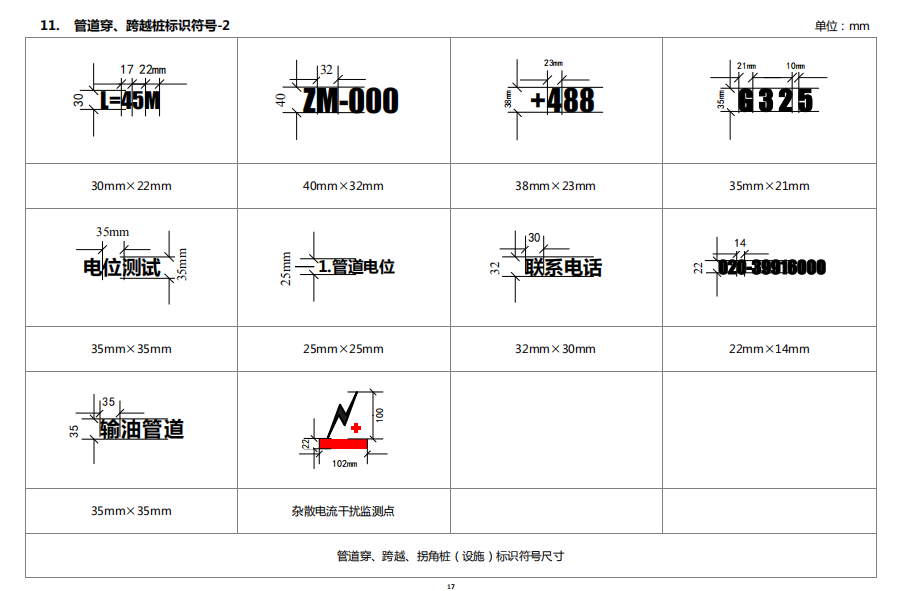6. 管道穿、跨越樁標識內容